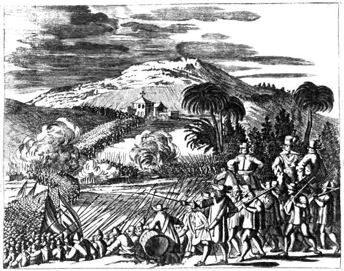 Waldemarus, King of Denmark and Norway, being consequently Master of this amongst the other Norwegian Colonies, Planted the Christian Religion in this Island in the Year of Christ 1398. and Ordain’d two Bishops, one in Schalholden, in the East part, another in Hollen, in the West; and after the Reformation was begun, Christianus, King of Denmark, took care to propagate the Reformed Doctrine there, as well as in other parts of his Dominions; and to that end sent over a Printer thither, that the BIBLE, together with the Works of Philip Melancthon and Urbanus Regius, might be publish’d in the Vulgar Tongue of the Countrey. But these Proceedings were mainly oppos’d by the Bishop of Schalholden, who animating the People to Rebellion, they slew the King’s Lieutenant: Whereupon the next Year Paul Holfelt, a Knight of the Danish Order, being sent over with an Army, overthrew the Rebels, and taking off the chief Heads of the Rebellion, committed the Charge of the Government to another Nobleman of Denmark, whom he left upon the Place. But one Tadde Bonde, a great Man of the Countrey, meditating a Revolt, 668drew divers Persons of principal note into Conspiracy with him, and was advancing to a formidable Power, had not the Bishop given continual Intelligence of their Proceedings to the King’s Lieutenant, who thereupon employ’d Agents to the chief Accomplices of the Faction, and what with fair Means and threatnings so wrought with them, that they return’d to their Obedience, and forsook Todde, insomuch that he flying with a small Party, betook himself to a fastness at the Foot of Heckelveld, where being hemm’d in, those about him were slain, and he himself taken Prisoner; and because no Man to whose safe custody he was offer’d durst receive him, so much dreaded was his Power, one Jonas, a bold courageous Fellow, slew him with his own Hand, and thereby put an end to all farther Tumults and Seditions.