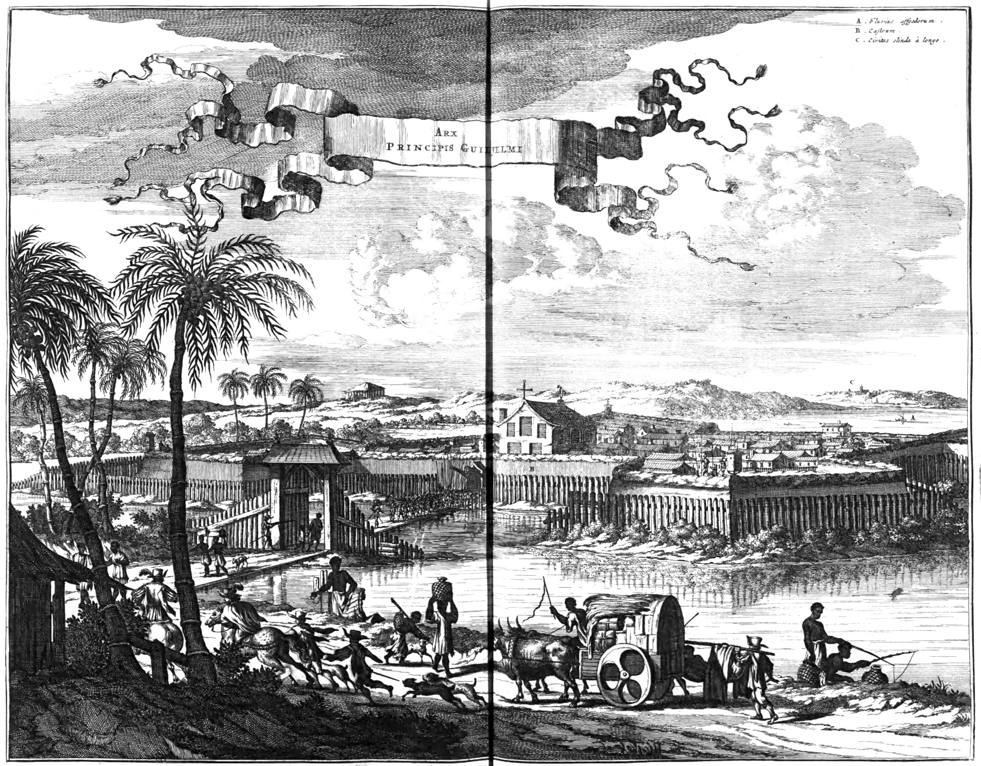 The onely Towns and Buildings of note here, and those created but of late Ages, are 1. Hafnefords, a Haven Town, chiefly frequented by Dutch Merchants for Traffick with the Natives.