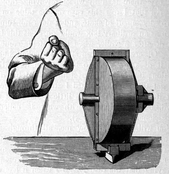 Here, for example, is a disc of quite thin paper (Fig. 1), and when I set it in rapid rotation you observe that it resists the force exerted by my {15}hand, the blow of my fist, as if it were a disc of steel. Hear how it resounds when I strike it with a stick. Where has its flexibility gone?