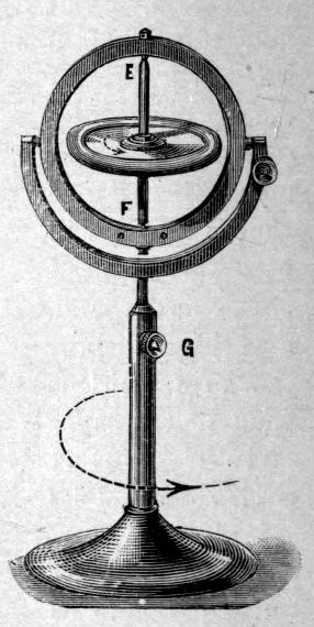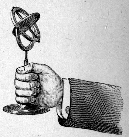 This then is the simple rule which will enable you to tell beforehand how a gyrostat will move {43}when you try to turn it in any particular direction. You have only to remember that if you continued your effort long enough, the spinning axis would become parallel to your new axis of motion, and the direction of spinning would be the same as the direction of your new turning motion.