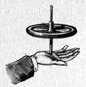 This is not the lecture as it was delivered. Instead of two pages of letterpress and a woodcut, the reader may imagine that for half a minute the lecturer played with a spinning top or gyrostat, and occasionally ejaculated words of warning, admonition, and explanation towards his audience. A verbatim report would make rather uninteresting reading, and I have taken the liberty of trying, by greater fullness of explanation, to make up to the reader for his not having seen the moving apparatus. It has also been necessary in a treatise intended for general readers to simplify the reasoning, the lecture having been delivered to persons whose life experiences peculiarly fitted them for understanding scientific things. An "argument" has been added at the end to make the steps of the reasoning clearer.