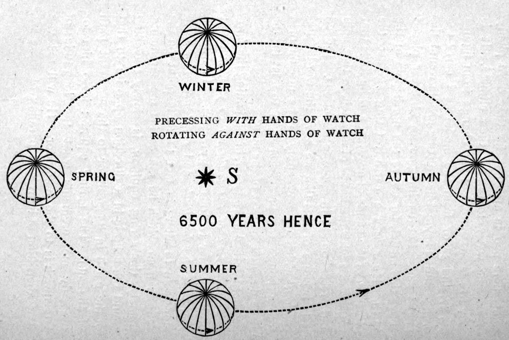I shall try to show you towards the end of the lecture that the fact of our earth's being a spinning body is one which would make itself known to us even if we lived in subterranean regions like the coming race of an ingenious novelist.[2] It is the greatest and most persistent cause of many of the phenomena which occur around us and beneath us, and it is probable that even Terrestrial Magnetism is almost altogether due to it. Indeed there is only one possible explanation of the Vril-ya ignorance about the earth's rotation. Their knowledge of mechanics and dynamics was immense; no member attending the meeting of the British Association can approach them in their knowledge of, I will not say, Vril, but even of quite vulgar electricity and magnetism; and yet this great race which expresses so strongly its contempt for Anglo-Saxon Koom-Poshery was actually ignorant of the fact that it had existed for untold generations inside an object that spins about an axis.