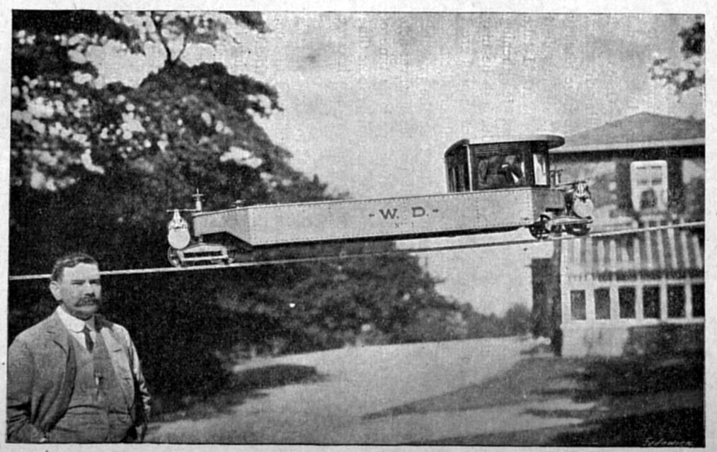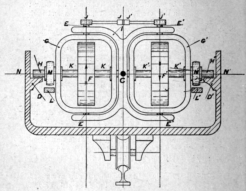 [15] The weight of Mr. Brennan's loaded wagon is 313 lb., including gyrostats and storage cells. His two wheels weigh 13 lb. If made of nickel steel and run at their highest safe speed they would weigh much less.