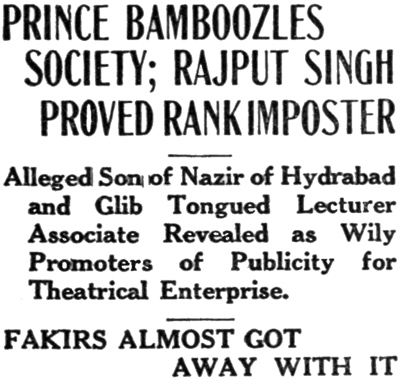 Jimmy Martin, couchant on a chaise longue in the royal suite of the Congress Hotel, had difficulty in persuading himself that he was wide awake and in full possession of all his senses. Opposite him sat the pseudo prince Rajput Singh in his shirt-sleeves, looking decidedly unromantic. The East Indian was talking rapidly and the inner import of the tale he was unfolding was of such a nature that Jimmy was aquiver with eager curiosity and aglow with anticipatory delight. He did not notice that the other’s eyes glinted unpleasantly as he spoke and that there was something positively repulsive about the smugly complacent manner in which he detailed the progress of his love affair with the wealthy sister of Junius P. Easton. All Jimmy could think of at the moment were the tremendous publicity possibilities inherent in the culmination of this incongruous romance.