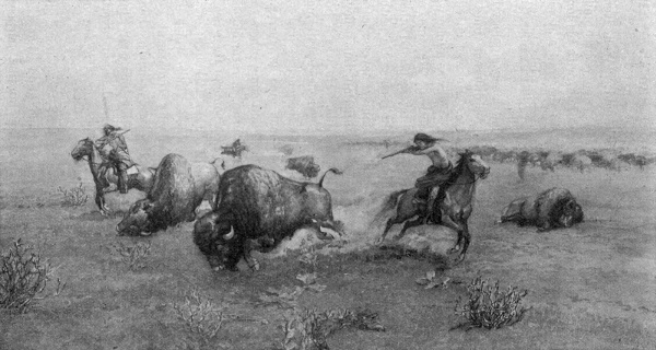 We camped here several days. On the third day after coming to this camp I had ridden west some two miles and sighted a band of buffalo, out of which I killed twelve,—all good robe hides.