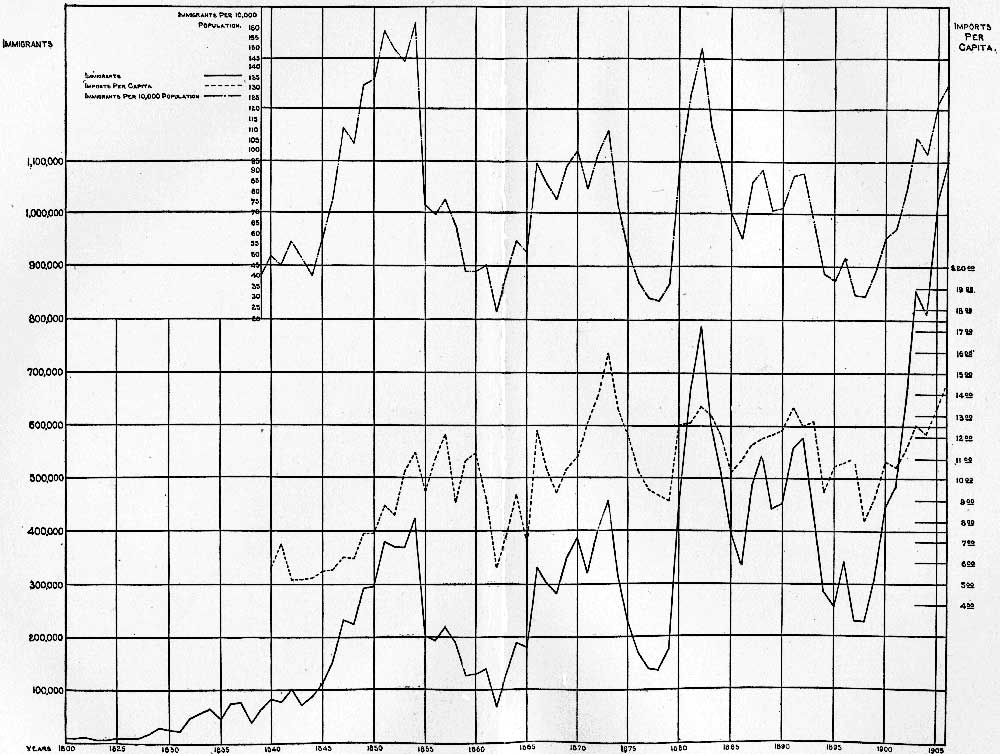 [124] Professor Smith, for the year 1888, estimated the colonial element at 29,000,000 and the immigrant element at 26,000,000, applying to the immigrants the average rate of increase from births. “Emigration and Immigration,” pp. 60-61.