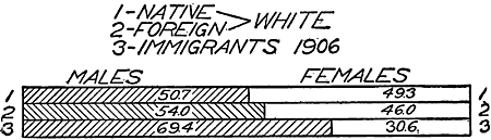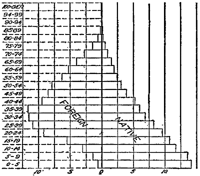 [129] Kuczynski concludes from his study of Massachusetts statistics that “the native population cannot hold its own. It seems to be dying out.” Could he have separated the two elements of the native population, he would have found that the immigrant element is dying out faster than the older native element. “The Fecundity of the Native and Foreign Born Population in Massachusetts,” p. 186.