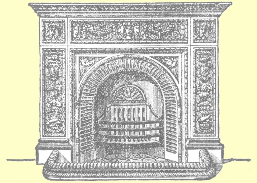 In addition to those classical and other adjuncts of architectural comfort and embellishment, embracing encaustic tiles—the reproduction of an art limited in mediæval times to church decoration, but now having a much more extended application, and the manufacture of tesseræ, used in the construction of geometrical mosaic pavements, similar in character to those found in the mediæval buildings of Italy, also moresque mosaics, like those occurring in Roman remains in this country and on the continent, they now manufacture a superior majolica, and faience of great purity, in both of which departments they have recently received p. 27first class medals at the Philadelphia exhibition. The accompanying engraving will convey an idea of the adaptation of faience to articles of domestic utility.