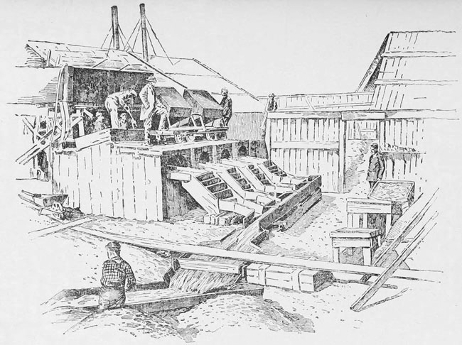 One Don Gregorio Lezama, with a capital of $70,000, organized an expedition, and sent it out with sluices and wind-mill pumps to supply the sluices. They reached the diggings and set up both sluices and pumps. Then they found that when the wind did not blow the pumps could not supply the sluices with water, and when the wind did blow the men could not supply the sluices with gold-bearing sand, because that sand was found only where the waves would then prevent the work of the men.