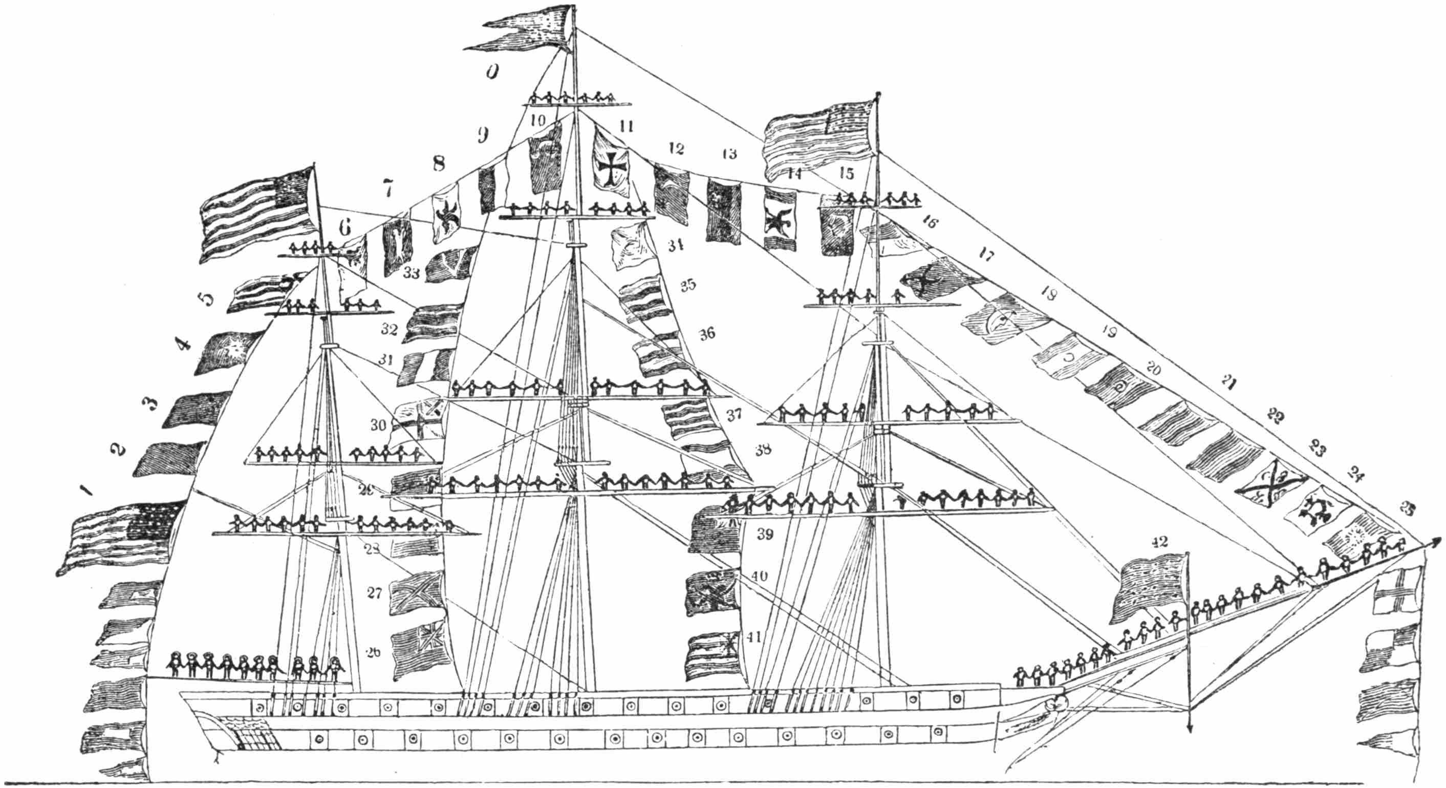 | Representation of a Ship-of-war, Dressed with Flags, and Yards Manned. (From the “Kedge Anchor”), | 27 |