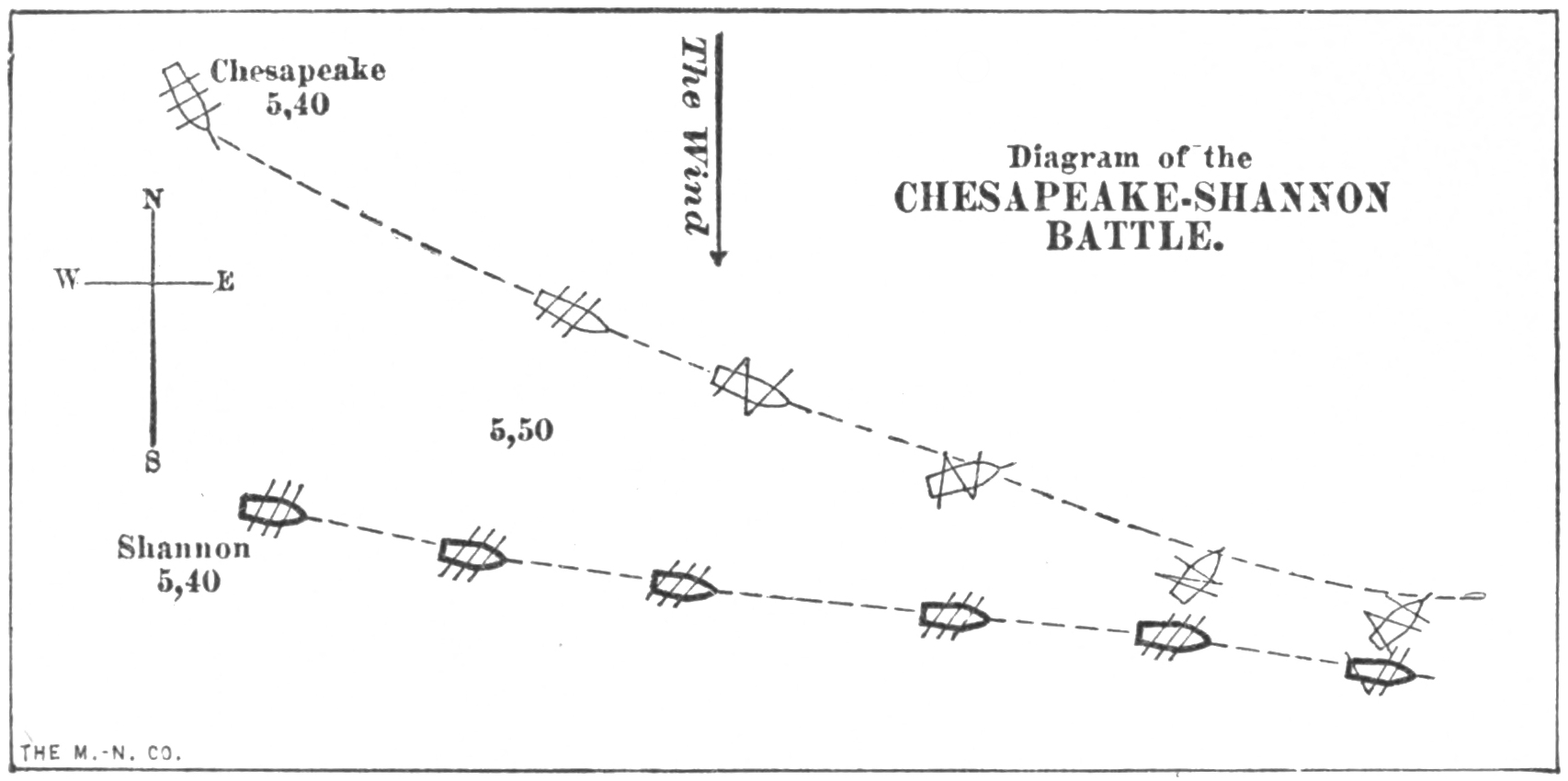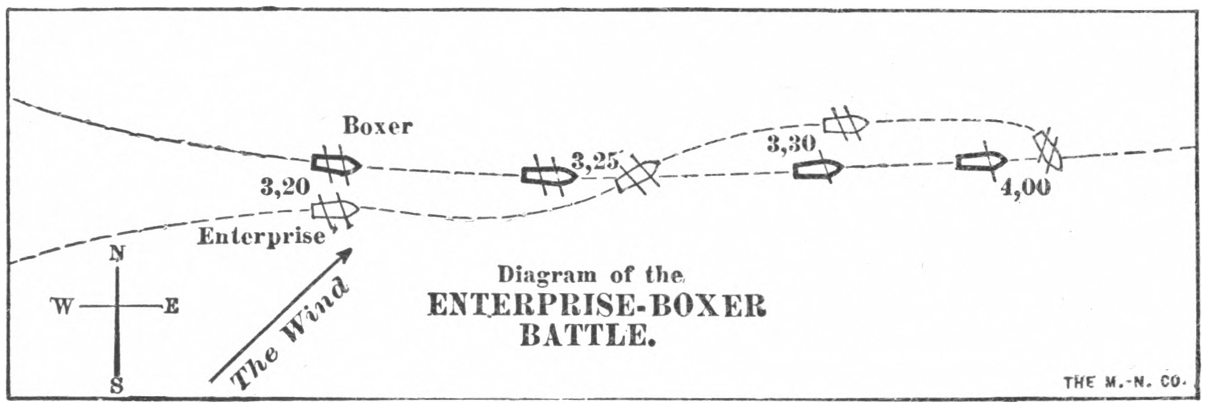 Then the men on the gun-boats had to fight out on an open deck, as did Perry’s men on Lake Erie, while those of a frigate fought behind thick timber bulwarks. And because the gun-boats were built with thin plank, a single shot could sink one, as happened to the sloop in the first fight on Lake Champlain, during this war, while a frigate could still float, as the brig Boxer did after it had received many shot below the water-line in the fight with the Enterprise.