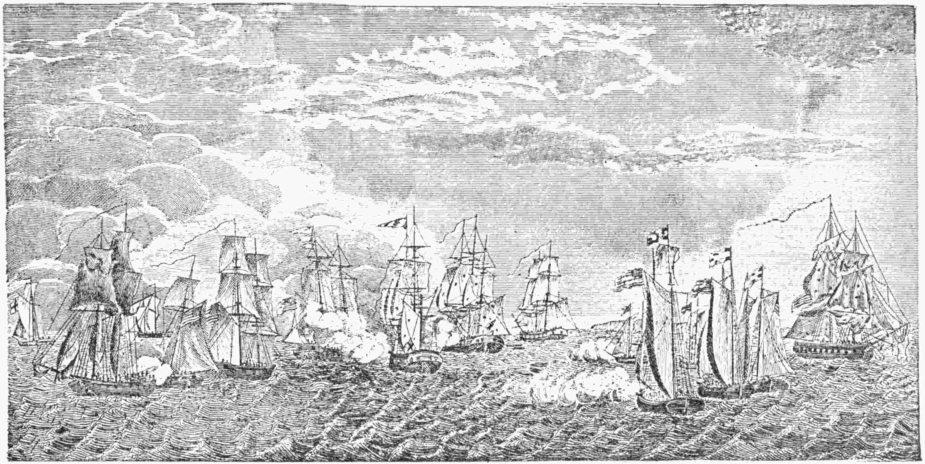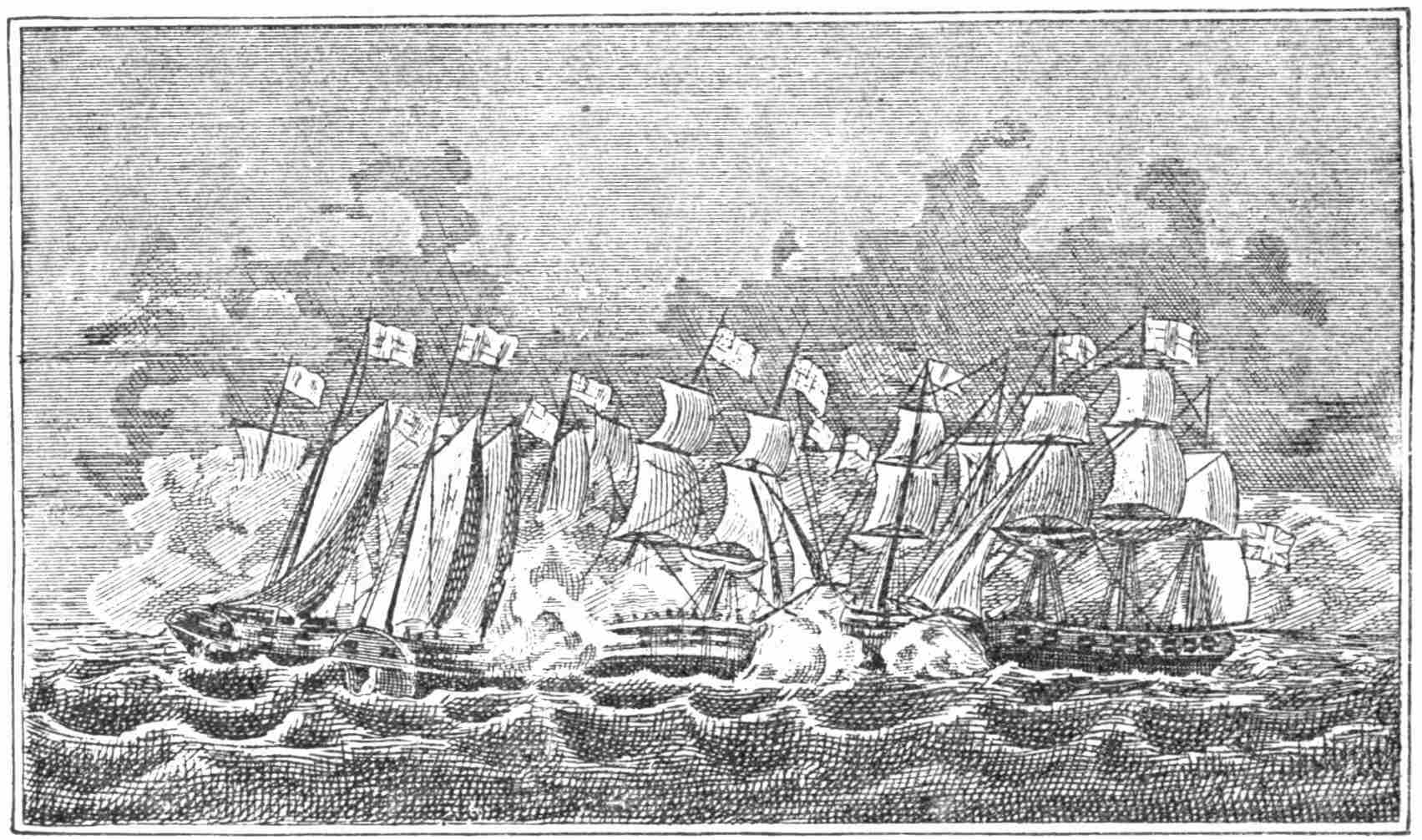 | The Constitution’s Escape from the British Squadron after a Chase of Sixty Hours. (From an engraving by Hoogland of the picture by Corné), | 57 |