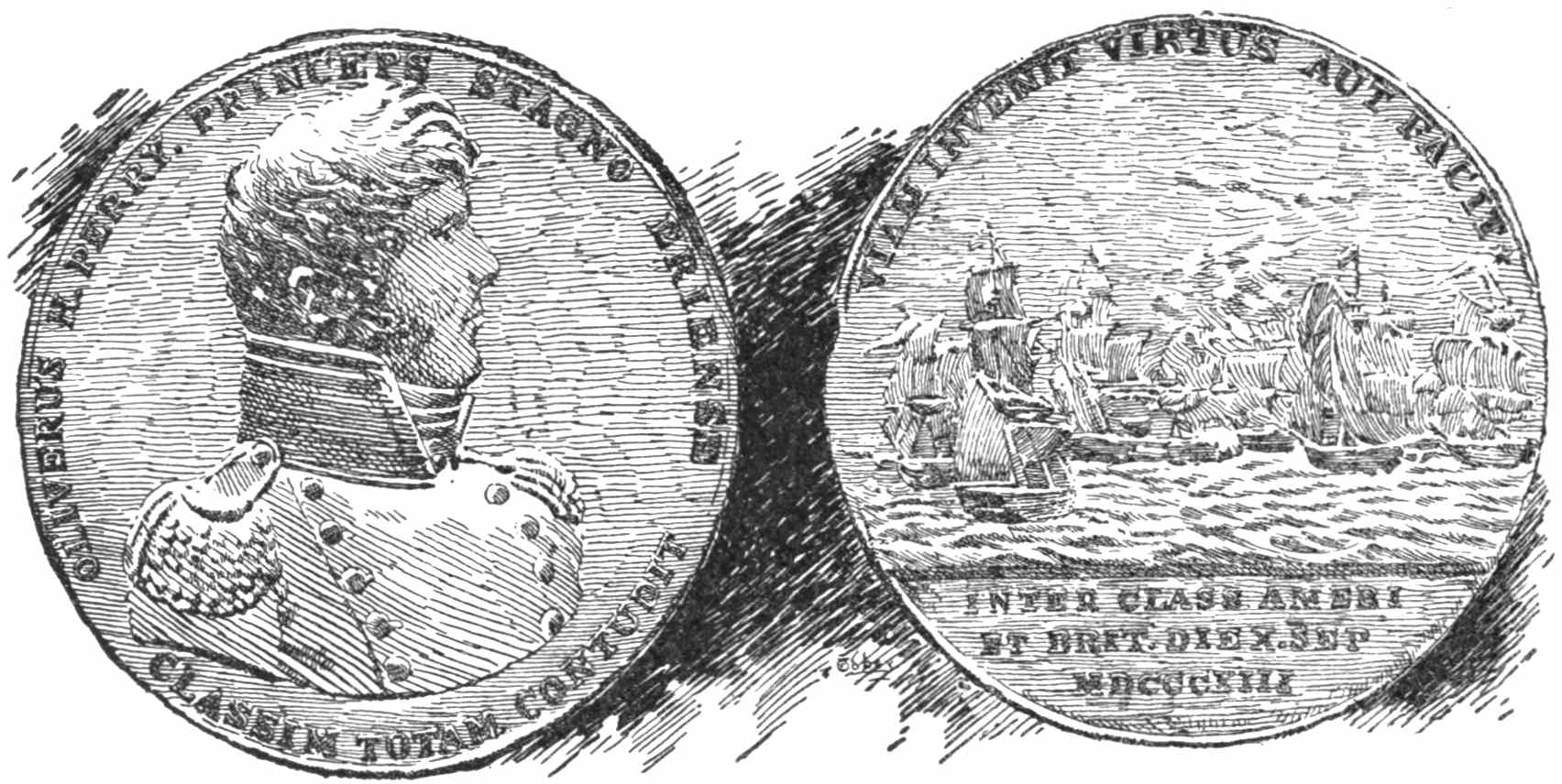 | Building War-ships and Gun-boats in the Wilderness—Lifting the Vessels over a Sand-bar—Fortunately the British Commander was Fond of Public Entertainments—The two Squadrons and their Crews Compared—The Advantage of a Concentrated Force was with the British—On the Way to Meet the Enemy—“To Windward or to Leeward they shall Fight To-day”—The Anglo-Saxon Cheer—The Brunt of the Fight Borne by the Flag-ship—A Frightful Slaughter there in Consequence—When Perry Worked the Guns with his own Hands, and even the Wounded Crawled up the Hatch to Lend a Hand at the Side-tackles—An Able First Lieutenant—Wounded Exposed to the Fire when under the Surgeon’s Care—The Last Gun Disabled—Shifting the Flag to the Niagara—Cheers that were Heard above the Roar of Cannon—When the Wounded of the Lawrence cried “Sink the Ship!”—Driving the Niagara through the British Squadron—The White Handkerchief Fluttering from a Boarding-pike—“We have Met the Enemy, and they are Ours.” | |