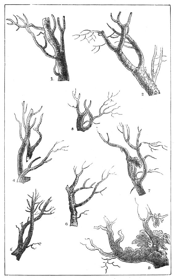 If, in fact, any change be effected in the examples in this plate, it is for the better; for, thus detached, they all look like small boughs, in which the faults are of little consequence; in the original works they are seen to be intended for large trunks of trees, and the errors are therefore pronounced on a much larger scale.