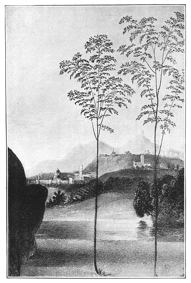 The plate from Raphael (11) is, I think, on the whole, satisfactory. It cost me much pains, as I had to facsimile the irregular form of every leaf; each being, in the original picture, executed with a somewhat wayward pencil-stroke of vivid brown on the clear sky.