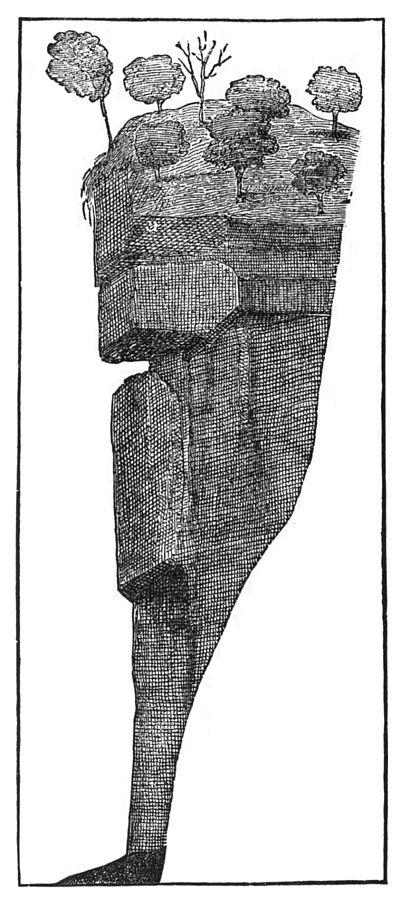 § 13. Take a somewhat more definite instance. The rock in Fig. 5., at the side, is one put by Ghirlandajo into the background of his Baptism of Christ. I have no doubt Ghirlandajo's own rocks and trees are better, in several respects, than those here represented, since I have copied them from one of Lasinio's execrable engravings; still, the harsh outline, and314 generally stiff and uninventful blankness of the design are true enough, and characteristic of all rock-painting of the period. In the plate below I have etched[99] the outline of a fragment of one of Turner's cliffs, out of his drawing of Bolton Abbey; and it does not seem to me that, supposing them properly introduced in the composition, the substitution of the soft natural lines for the hard unnatural ones would make Ghirlandajo's background one whit less sacred.