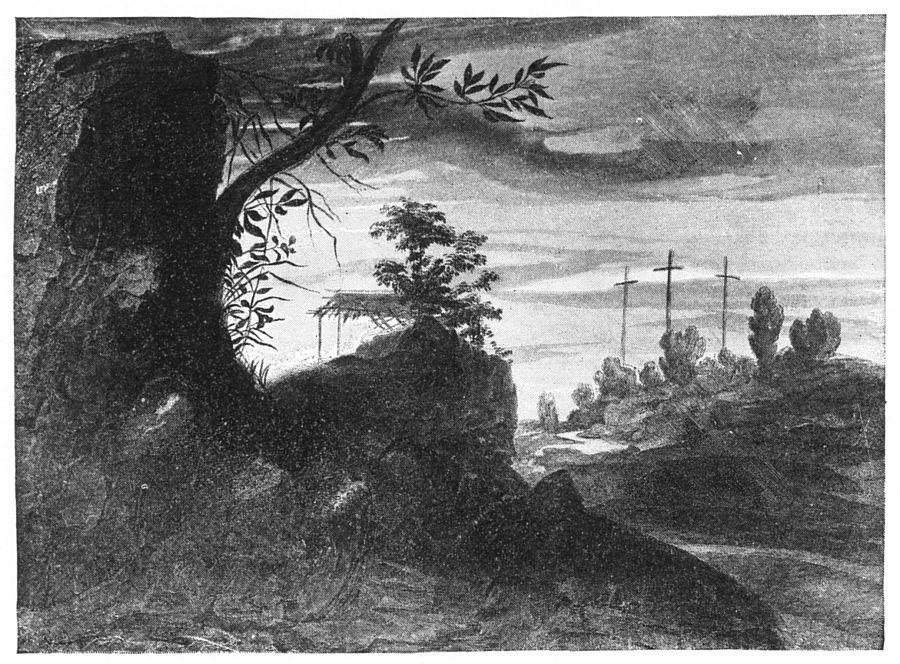 § 20. The Venetian school of landscape expired with Tintoret, in the year 1594; and the sixteenth century closed, like a grave, over the great art of the world. There is no entirely sincere or great art in the seventeenth century. Rubens and Rembrandt are its two greatest men, both deeply stained by the errors and affectations of their age. The influence of the Venetians hardly extended to them; the tower of the Titianesque art fell southwards; and on the dust of its ruins grew various art-weeds, such as Domenichino and the Carraccis. Their landscape, which may in few words be accurately defined as "Scum of Titian," possesses no single merit, nor any ground for the forgiveness of demerit; they are to be named only as a link through which the Venetian influence came dimly down to Claude and Salvator.