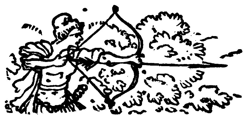 § 26. But meantime his mind had been strongly warped by Claude's futilities of conception. It was impossible to dwell on such works for any length of time without being grievously harmed by them; and the style of Turner's compositions was for ever afterwards weakened or corrupted. For, truly, it is almost beyond belief into what depth of absurdity Claude plunges continually in his most admired designs. For instance; undertaking to paint Moses at the Burning Bush, he represents a graceful landscape with a city, a river, and a bridge, and plenty of tall trees, and the sea, and numbers of people going about their business and pleasure in every direction; and the bush burning quietly upon a bank in the corner; rather in the321 dark, and not to be seen without close inspection. It would take some pages of close writing to point out, one by one, the inanities of heart, soul, and brain which such a conception involves; the ineffable ignorance of the nature of the event, and of the scene of it; the incapacity of conceiving anything even in ignorance, which should be impressive; the dim, stupid, serene, leguminous enjoyment of his sunny afternoon—burn the bushes as much as they liked—these I leave the reader to think over at his leisure, either before the picture in Lord Ellesmere's gallery, or the sketch of it in the Liber Veritatis. But all these kinds of fallacy sprung more or less out of the vices of the time in which Claude lived; his own peculiar character reaches beyond these, to an incapacity of understanding the main point in anything he had to represent, down to the minutest detail, which is quite unequalled, as far as I know, in human nugatoriness. For instance; here, in Fig. 7., is the head, with half the body, of Eneas drawing his Bow, from No. 180. of the Liber Veritatis. Observe, the string is too long by half; for if the bow were unbent, it would be two feet longer than the whole bow. Then the arrow is too long by half, has too heavy a head by half; and finally, it actually is under the bow-hand, instead of above it. Of the ideal and heroic refinement of the head and drapery I will say nothing; but look only at the wretched archery, and consider if it would be possible for any child to draw the thing with less understanding, or to make more mistakes in the given compass.[102]
