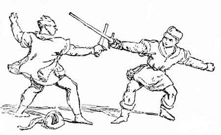 "What did you keep us waiting in the rain for?" said Schwartz, as he walked in, throwing his umbrella in Gluck's face. "Ay! what for, indeed, you little vagabond?" said Hans, administering an educational box on the ear, as he followed his brother into the kitchen.