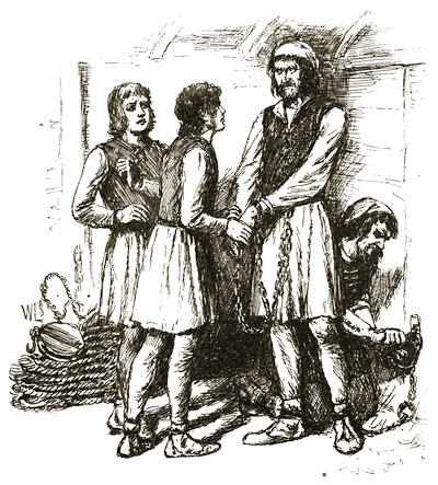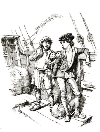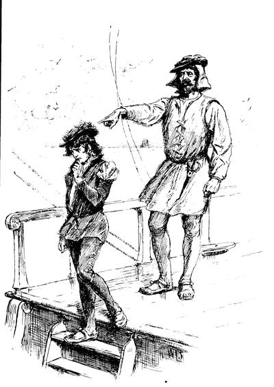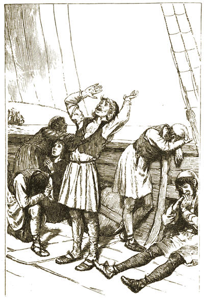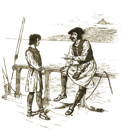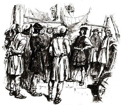 “It will soothe Martin Alonzo to see you,” said Rodrigo, “for he has grieved sometimes like a madman because of your loss. As for Miguel, he will be very glad to get out of his chains, where Martin Alonzo has kept him, vowing he would hang him to the yard if the Pinta left the island without you.”