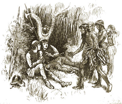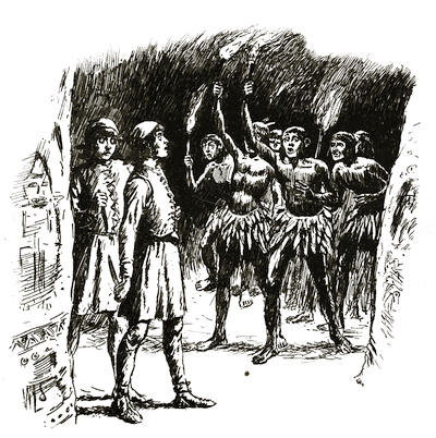 Then, one night, their opportunity came. It came in a singular way, too. The people were passionately fond of dancing, and knew no moderation[239] in it. They would often dance as the boys had seen the cacique do, who had discovered them at the cave, keeping on their feet until their strength was exhausted, and then dropping, almost fainting, to the earth.