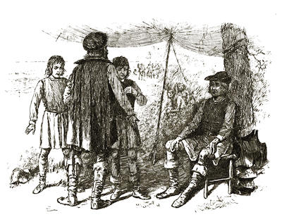 Another night’s journey had to be made after that before they could find a canoe; but they did at last come upon one, and took it without qualms of conscience, knowing that the hawk’s bell they hung in a conspicuous place in payment for it would be deemed a sufficient recompense.