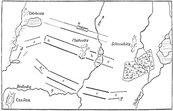 | Frederick’s Motives for the War.—Marriage of William Augustus.—Testimony of Lord Macaulay.—Frederick and his Allies.—Visit to Dresden.—Military Energy.—Charles Albert chosen Emperor.—The Coronation.—Effeminacy of the Saxon Princes.—Disappointment and Vexation of Frederick.—He withdraws in Chagrin.—The Cantonment on the Elbe.—Winter Campaigning.—The Concentration at Chrudim | 295 |
