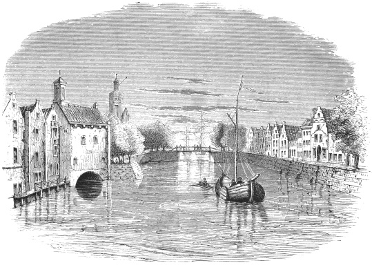 At last the poor creatures were turned adrift. No historic pen has recorded the details of their sufferings. Some undoubtedly perished of exposure. Some were kindly sheltered by the charitable, and some succeeded in various ways in crossing the sea to Amsterdam. There were similar persecutions in other parts of England. Quite a large company of pilgrims from various sections of England had succeeded, some in one way and some in another, in effecting their escape to Holland. They had nearly all taken up their residence in Amsterdam. This flourishing city was so called because it had sprung up around a dam which had been thrown across the mouth of the Amstel river. It was even then renowned for its stately buildings, its extended commerce and its opulence. Ships, from every clime, lined its wharfs; water craft of every variety and in almost countless numbers floated upon its canals, which took the place of streets.22 From many parts of Europe Protestants had fled to this city, bringing with them their arts, manufactures and skill in trade. The emigrants from Scrooby were nearly all farmers. They had no money to purchase lands, and they found it very difficult to obtain remunerative employment in the crowded streets of the commercial city. Governor Bradford writes, of his companions in affliction: