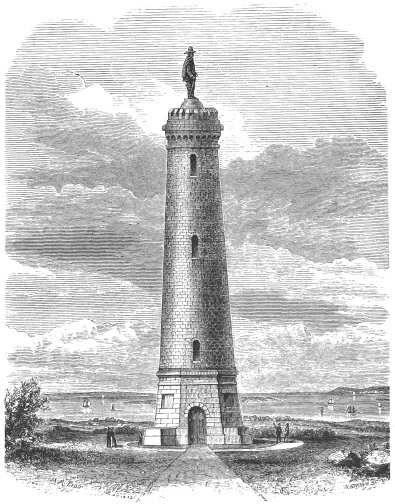 This fine shaft rises one hundred and ten feet from its base, and is surmounted by a bronze statue of the372 Captain, in full uniform, twelve feet in height, and is said to be a truthful likeness. The diameter of the shaft, at its base, is twenty-eight feet. The structure is of the finest quality of Quincy granite. I will close this brief narrative with the eloquent words of Gen. Horace Binney Sargent: