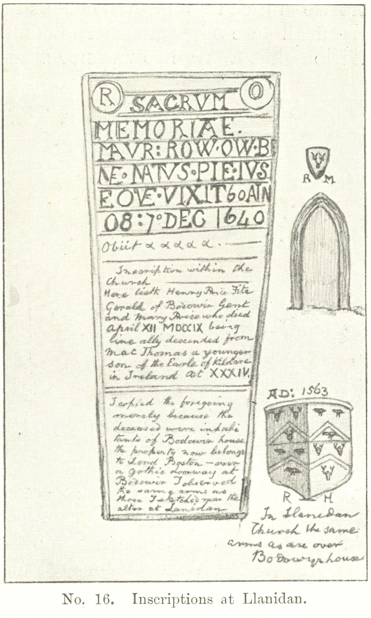 2. David ap Rees de Bodewryd Armiger obiit 27º Julii anno Dni 1551 uxorem habuit Anghared filiam et heredem de Plâs y Brian in parochia de Llanbeder.