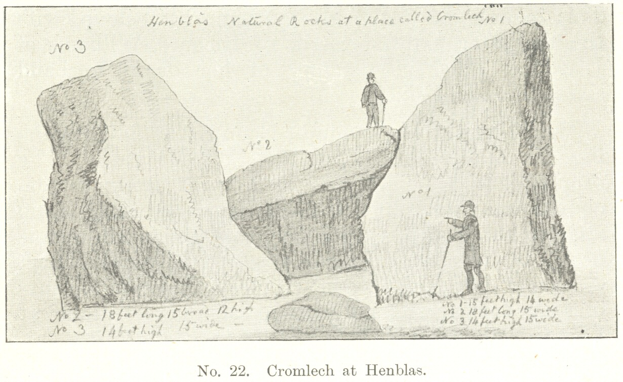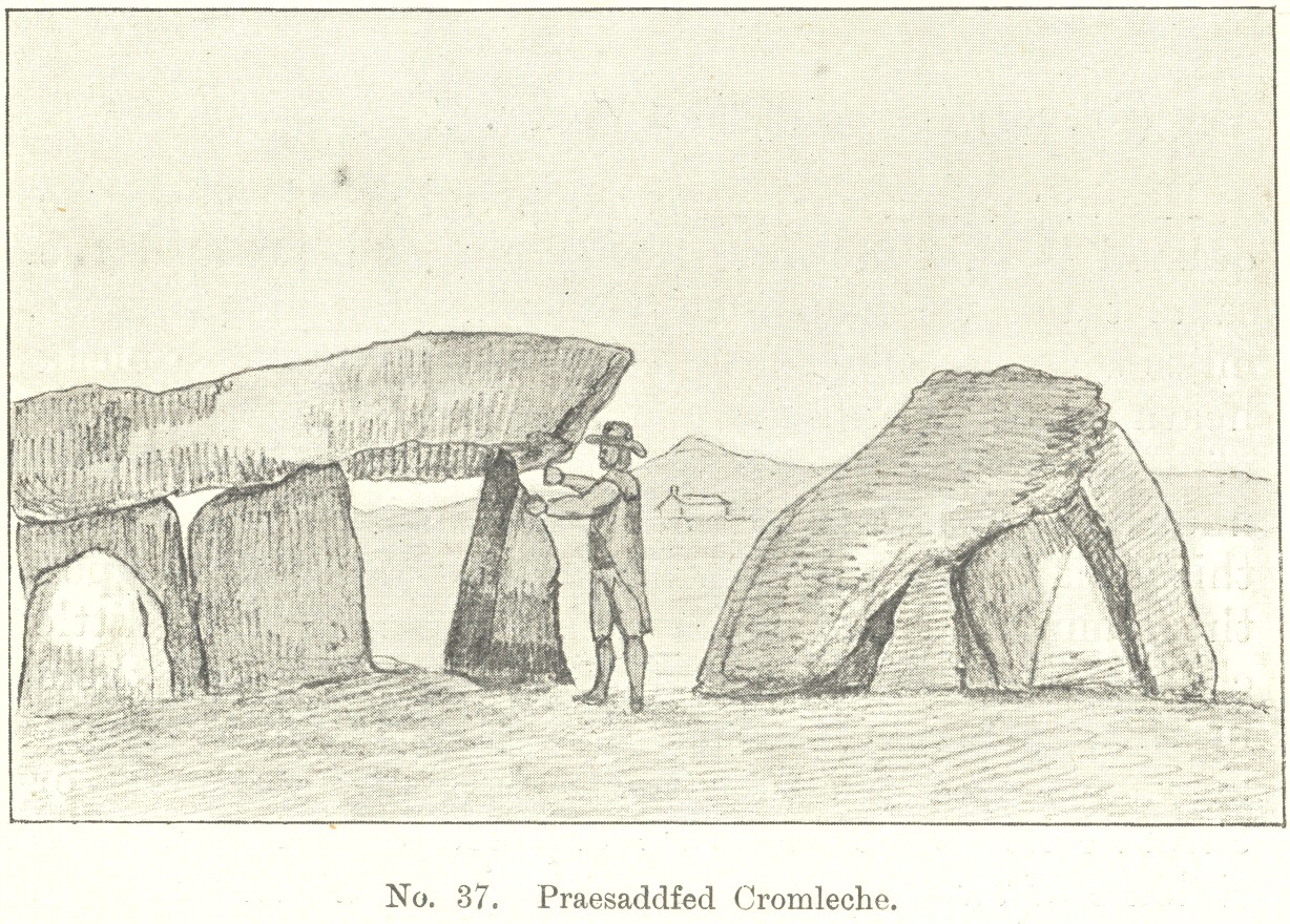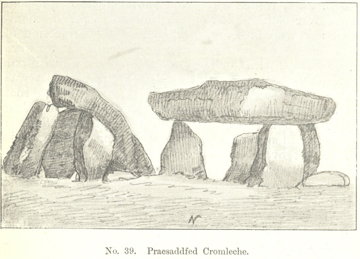 Whether these were ever employed in the formation of a second cromlech like at Praes Addfed [86a] I cannot pretend to determine. About two fields from hence in our way to Penymynnedd [86b] we traced one of very p. 88small dimensions, the cap stone not being above a yard across and its two supporters a foot and a half high.