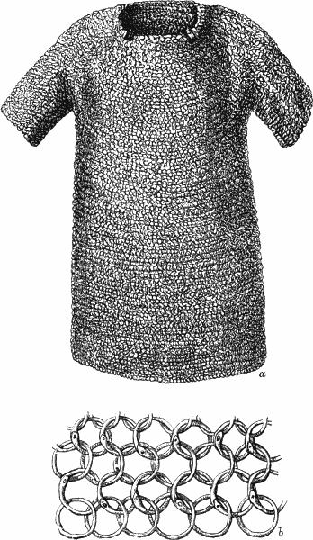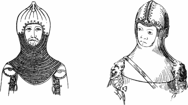 The wearing of armour, particularly mail, on land, necessitated riding, and the northern rovers, finding the weight intolerable on their inland forays, took to horse whenever possible, harrying by this means an extent of country otherwise almost inaccessible. They even learnt in time to transport their horses over the sea, and in the ninth and tenth centuries landed in England from France as a mounted force, as their descendants after them did at Hastings. The English, on the other hand, rarely wore mail, though the spoils of the Danes might have furnished a fair supply, and they only used cavalry as a small force for scouting. An English king of the eighth century is, however, represented in mail by Strutt, and Harold and his immediate companions may have worn mail at Hastings, as represented in the Bayeux tapestry, and as he certainly did when assisting William in his war against Conan of Brittany. Handsome presents of Norman arms and armour were then made to him by Duke William. A little later we have the curious testimony of Anna Comnena, 1083-1146, that this mail, made entirely of steel rings riveted together, was wholly unknown in Byzantium, and only worn by the inhabitants of Northern Europe.