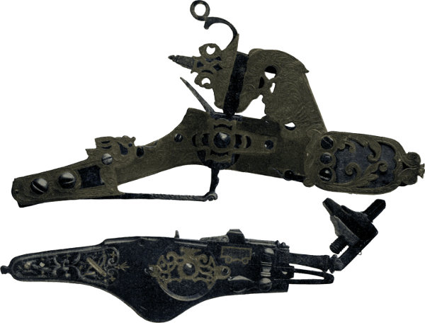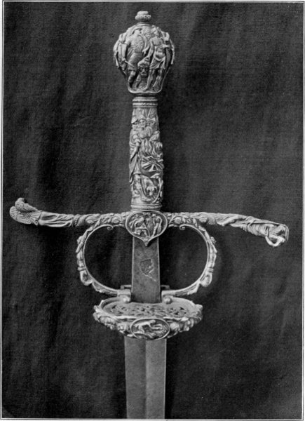| VIII. | The sword of Charles I. when Prince of Wales, 1616. The hilt entirely covered with raised gold damascened work on blue steel matrix, except the grip of silver wire work. Preserved in Windsor Castle | 96 |