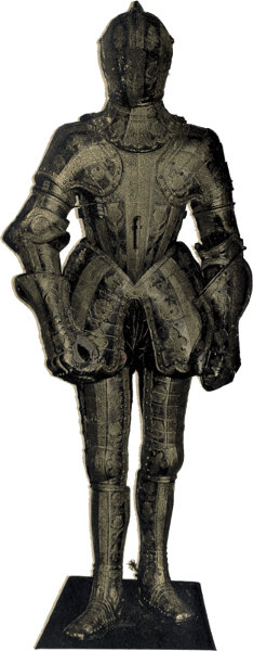 Plate I.—Full suit of armour of Henry, Prince of Wales, in the guard-chamber at Windsor Castle. Attributed to William Pickering, master armourer.