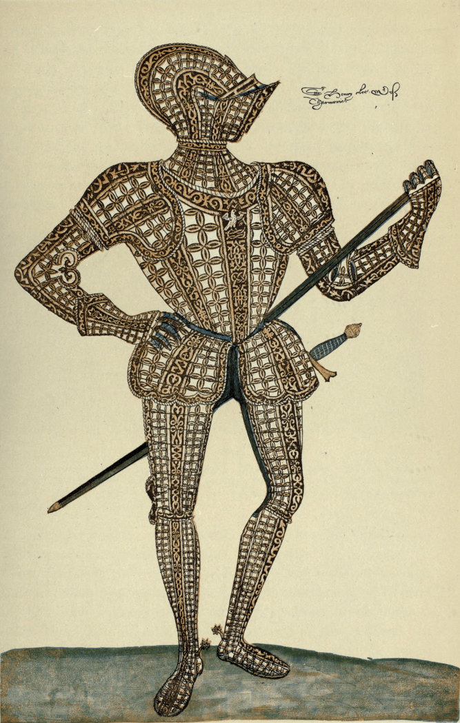 | III. | First suit of Sir Christopher Hatton, Captain of the Guard, and subsequently Lord Chancellor. Reduced facsimile of No. 15 in the Armourers’ Album in the South Kensington Museum | 40 |