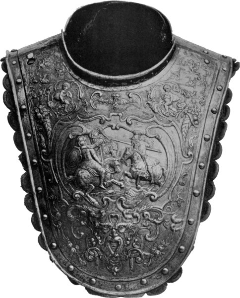 | VII. | Ornament on the tapul of the breastplate belonging to the half-suit of the Earl of Essex (Fig. 35), with the original gilding slightly restored. In the Guard-chamber of Windsor Castle | 90 |