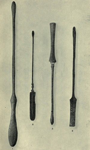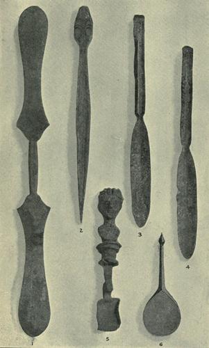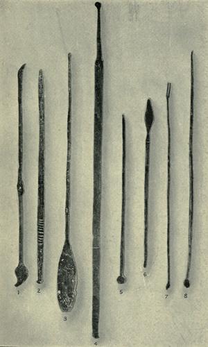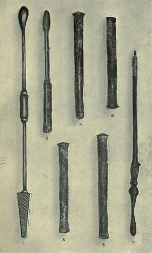 The books from which I have drawn most information are Brunner’s Die Spuren der römischen Ärzte auf dem Boden der Schweiz, Deneffe’s Étude sur la Trousse d’un Chirurgien Gallo-Romain du IIIe Siècle, Adams’ translation of Paulus Aegineta, and the papers of Vulpes in the volume for 1851 of the Memorie della Regale Accademia Ercolanese di Archeologia.