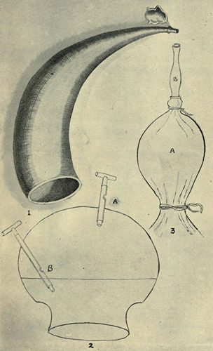 A word must be said of the later writers such as Paré (1509-90), Scultetus (1650), and Heister (1739). The works of these are profusely illustrated with instruments, some of which can plainly be seen to tally exactly with the descriptions of the classical authors. In other cases, although the names given to the instruments are those of classical times, it is, to say the least, doubtful whether they are of the same form as the ancient instruments whose names they bear. That was an age of great activity in the manufacture of new forms of surgical instruments, and we[Pg 9] must accept with caution illustrations professing to indicate ancient forms of instruments. At the same time it is very interesting to note the large number of primitive arrangements which remained in use till nearly 1800. The enema syringe figured by Heister is exactly the same as we find described in the Hippocratic works—the bladder of an animal affixed to a tube—and many practitioners alive at the present day have seen the same simple arrangement in actual use.