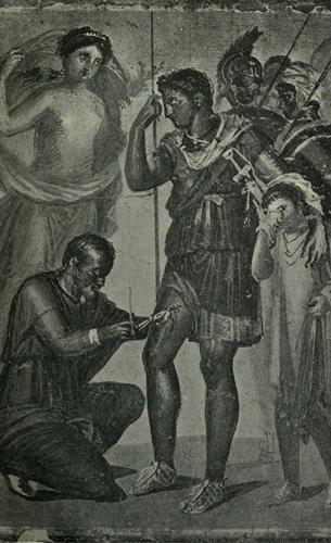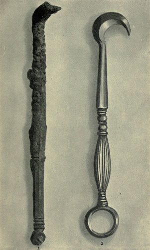 The surgical instruments we meet with are, as a rule, of bronze. Not that the Greeks and Romans did not make many of their instruments of iron and steel, but the iron has mainly perished while more of the bronze has persisted. Long before the date of the earliest medical writings, Greece had passed into the iron age. The Homeric poems picture a civilization in the state of transition from a bronze to an iron period, and weapons such as sword, axe, and spear, are frequently described as made of iron. In the Iliad we even read of implements of agriculture made of iron, but it is ‘hard to work’ (πολύκμητος, Iliad vi. 48, Od. xxi. 10). However, by the time that Hippocrates wrote, it was in common use, and, if we had only the evidence of the Hippocratic writings to go by, we could see that it was in common use in the time of Hippocrates. Certain instruments, such as the cautery, are always spoken of as made of iron, in fact, the term for cautery is, as a rule, ‘the iron,’ and σίδηρος ὁ ὀξύς is a general term for ‘the knife’. The smelting of iron is even used as a simile by Hippocrates: