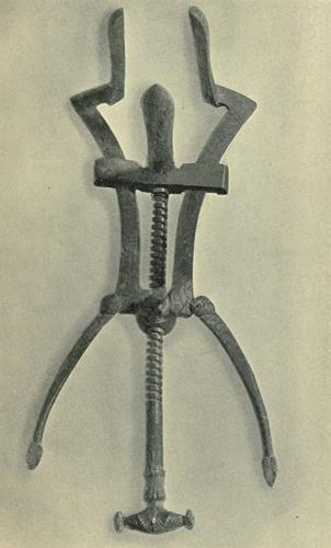 The earliest classical writer on medical subjects is Hippocrates, who was born in 460 B. C. and who practised in Athens and other parts of Greece. The ‘Hippocratic Collection’ is well known to consist of works which are not all by Hippocrates himself; but as the pseudo-Hippocratic works all belong to the classical period they are all admissible as evidence for our purpose, and for the sake of brevity I shall throughout refer to them as if all were by Hippocrates. Many interesting instruments are named in the comparatively small collection of treatises which make up the admittedly genuine list of Hippocratic works, but, taking these along with the pseudo-Hippocratic works, the number of instruments named in the whole collection is surprisingly large, comprising as it does trephines, bone drills, probes, needles, tooth forceps, uvula forceps, bone elevators, uterine sounds, graduated dilators, cranioclasts, and others. After Hippocrates there is a break in the continuity of the literature, and for some hundreds of years Greek medicine is represented almost entirely by the Alexandrian Schools. The first printed edition of the Hippocratic works was a Latin translation printed at Rome in 1525, followed by the Aldine edition of the Greek text printed at Venice in the following year. Other editions are the edition of Föes (1595), Van der Linden (1665), Kühn (Leipzig, 1821). Later editions are the text with a French translation by Littré (10 vols., 1849-61), a scholarly[Pg 2] edition by Ermerins with a Latin rendering (1859-64), and an excellent translation of the genuine works of Hippocrates by the world-famous Dr. Adams of Banchory (Sydenham Soc. Trans., 1849). The best edition, however, is the edition of Kuehlewein, begun in 1894 and at present in course of publication by Teubner, Leipzig. The later volumes have not yet appeared. For the portion of the text which is not contained in the first two volumes of Kuehlewein I have relied on the edition of Kühn for most of the readings, although occasionally those of Van der Linden or Föes are to be preferred. The references given are to the volumes and pages of Kühn’s edition, but in this edition indications are given of the corresponding localities in the other editions so that cross-references to these can easily be made. There seems to be a different arrangement in different editions of Föes, for Liddell and Scott say the references in their Lexicon are to the pages in Föes but they do not correspond in any way to the pagination of the edition before me (Frankfort, 1595).