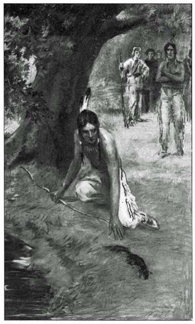 From his own canoe the backwoodsman scanned the bank. The daylight was still strong enough for him to see the imprint of the moccasined feet in the soft ooze.