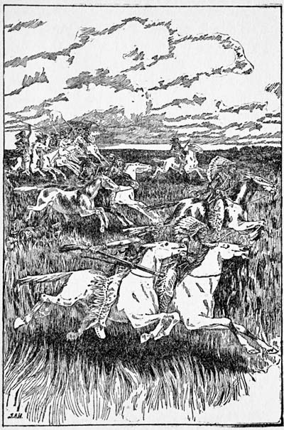The three lads darted out, and around the house. Under some trees not far from the trail were a dozen or more mounted men. Huntley was running toward these, the fainting form of a girl in his arms.
