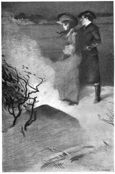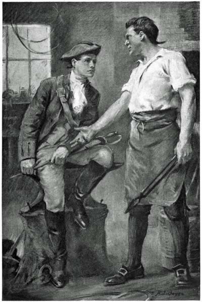 [326]Again they stood together before the hearth, watching the curling flames and the darting sparks. Then suddenly he reared his head, as he became aware of a jarring, far-off sound. His eyes went to the window; a Hessian guard had paused in his monotonous tramping and stood as though listening. Again it came, a sullen jarring, far off, yet somehow plain.