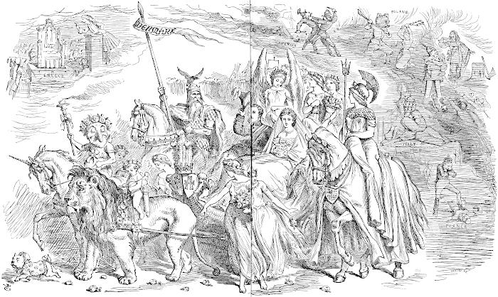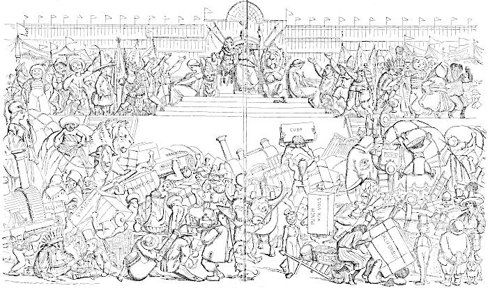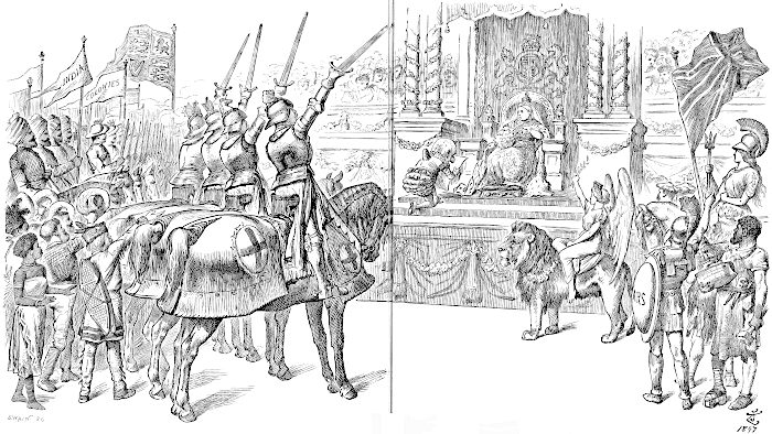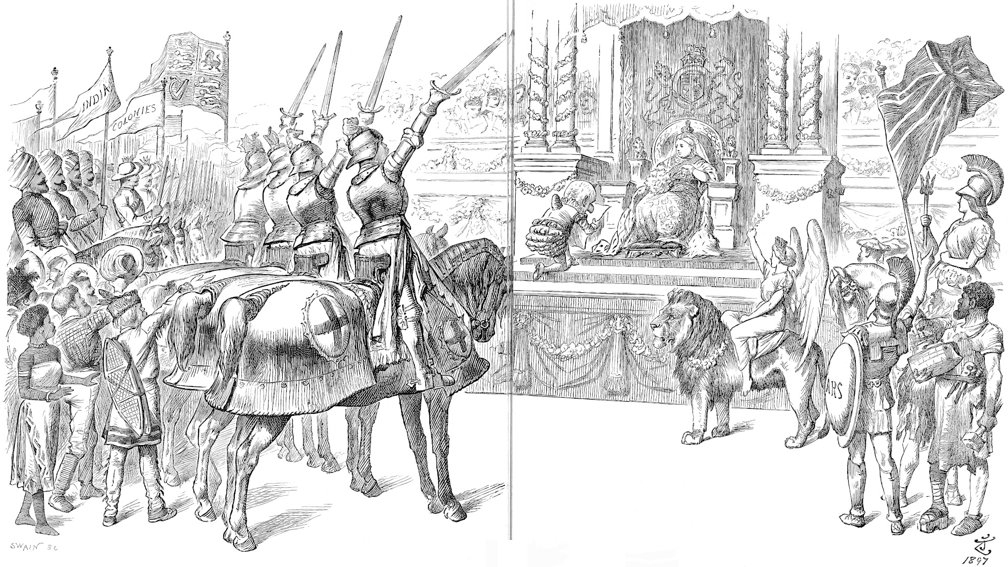 | The Cartoon is typical of the great celebrations which marked the Queen’s Diamond Jubilee. The Colonial, Asiatic, and African contingents took part in the procession on June 22. | |