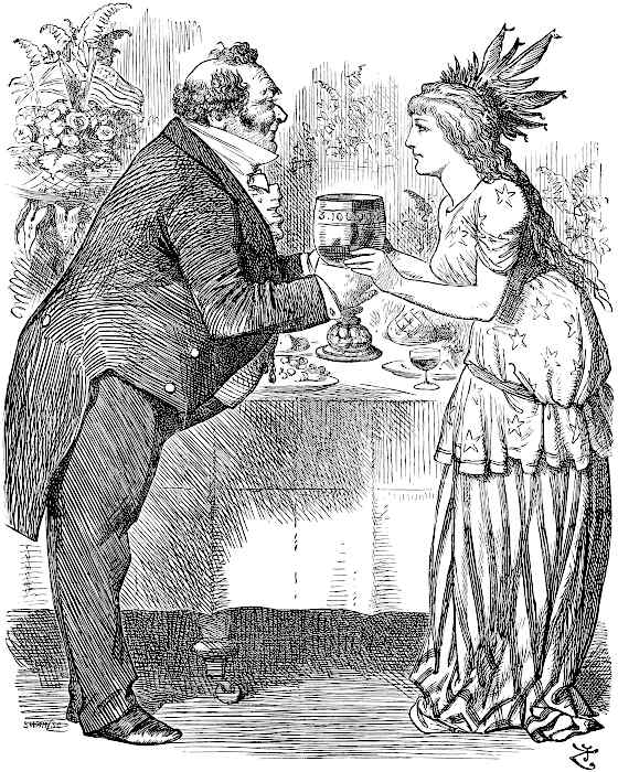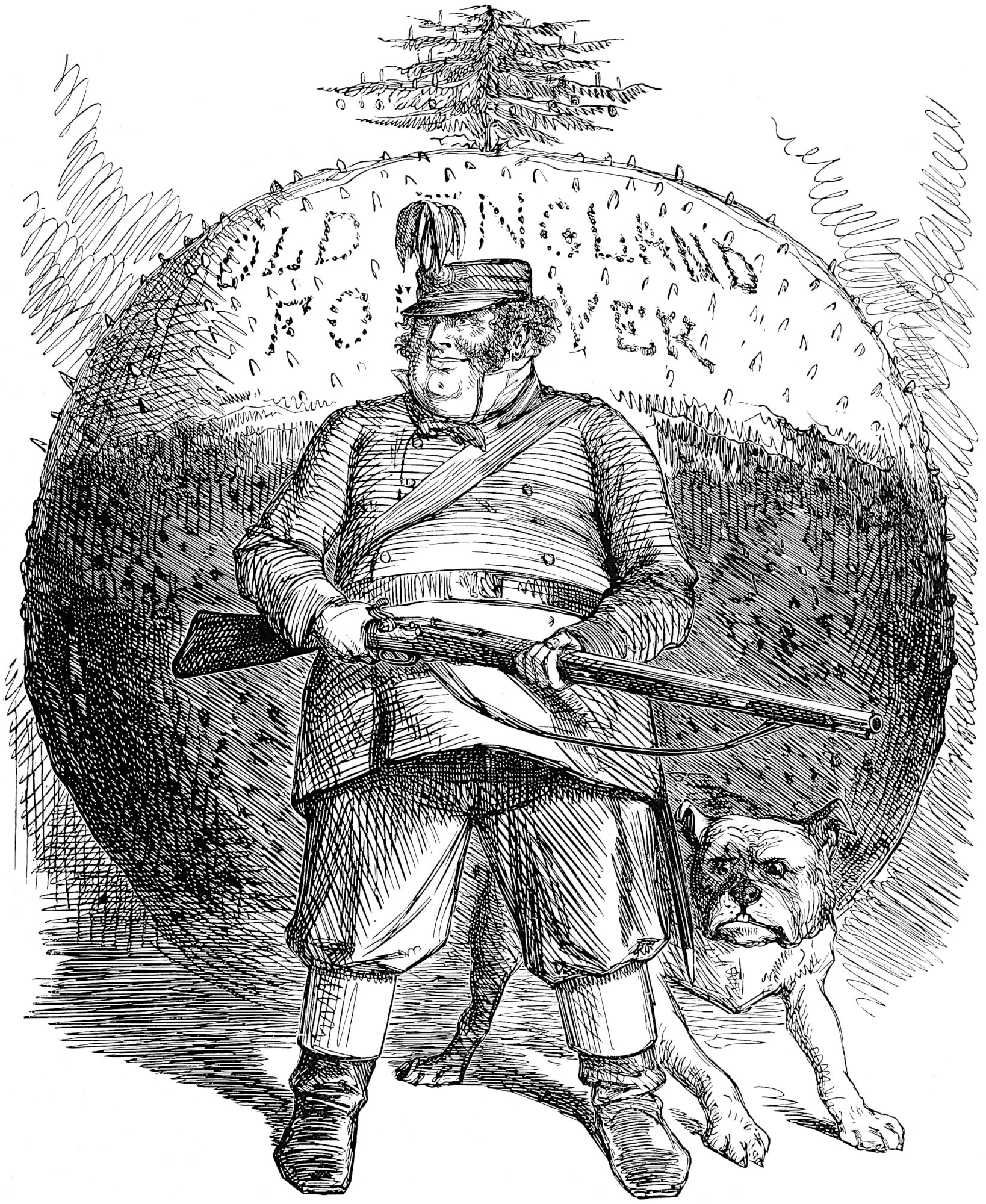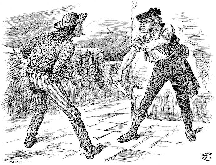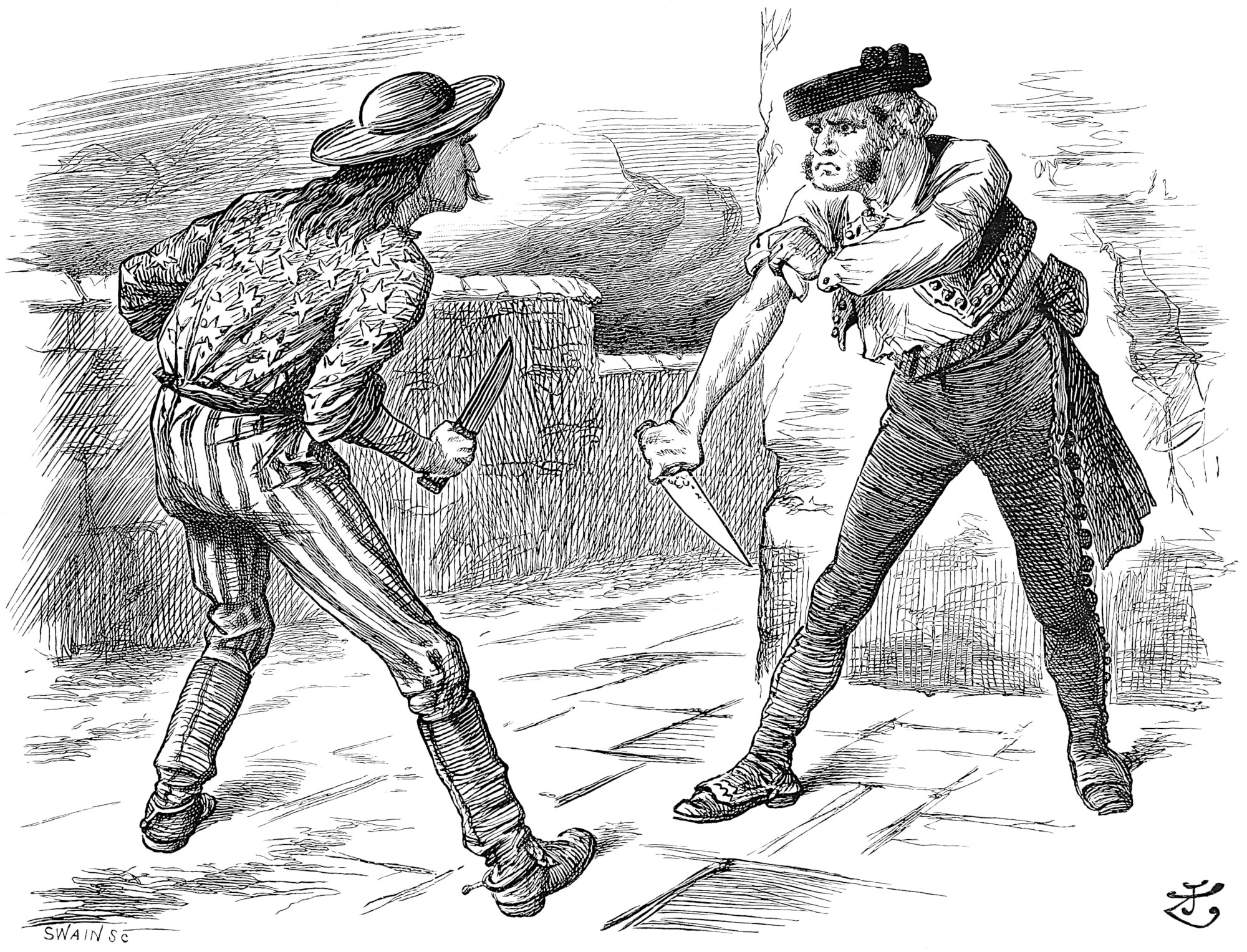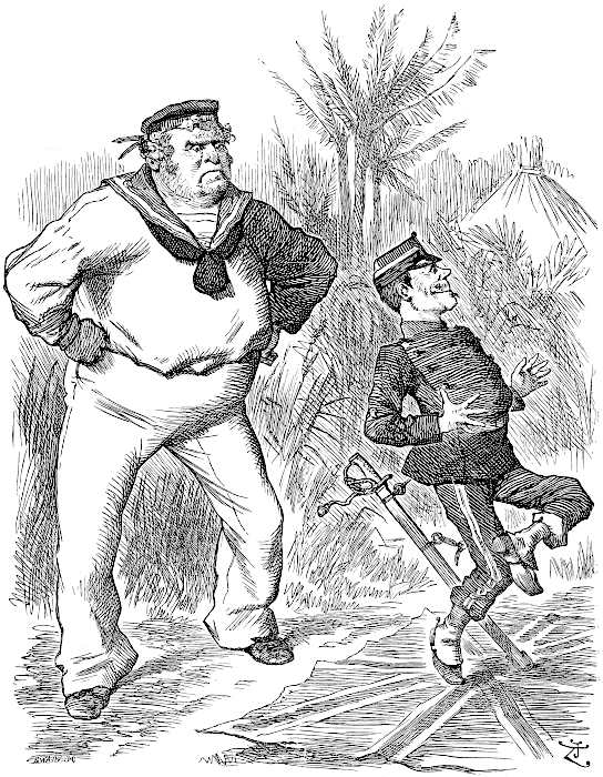 John Bull. “Look here, my little Friend, I don’t want to hurt your little feelings—but, come off that Flag!!!”