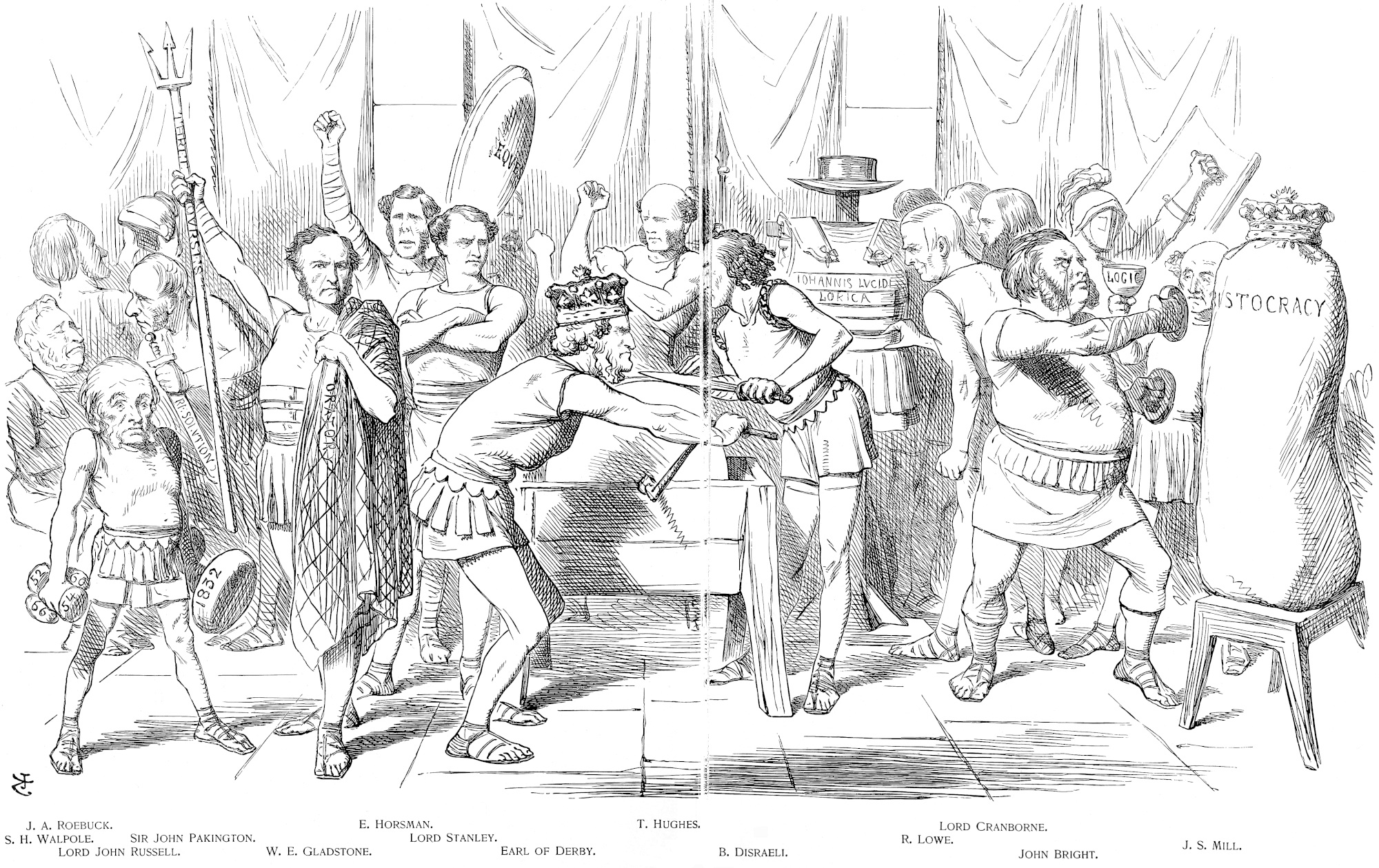 Lord John Russel. W. E. Gladstone. Earl of Derby. B. Disraeli. John Bright.