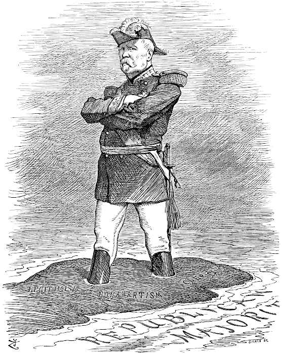 | After the death of M. Thiers, Marshal MacMahon maintained a stubborn attitude; he was believed to be under the influence of reactionary advisers. | |