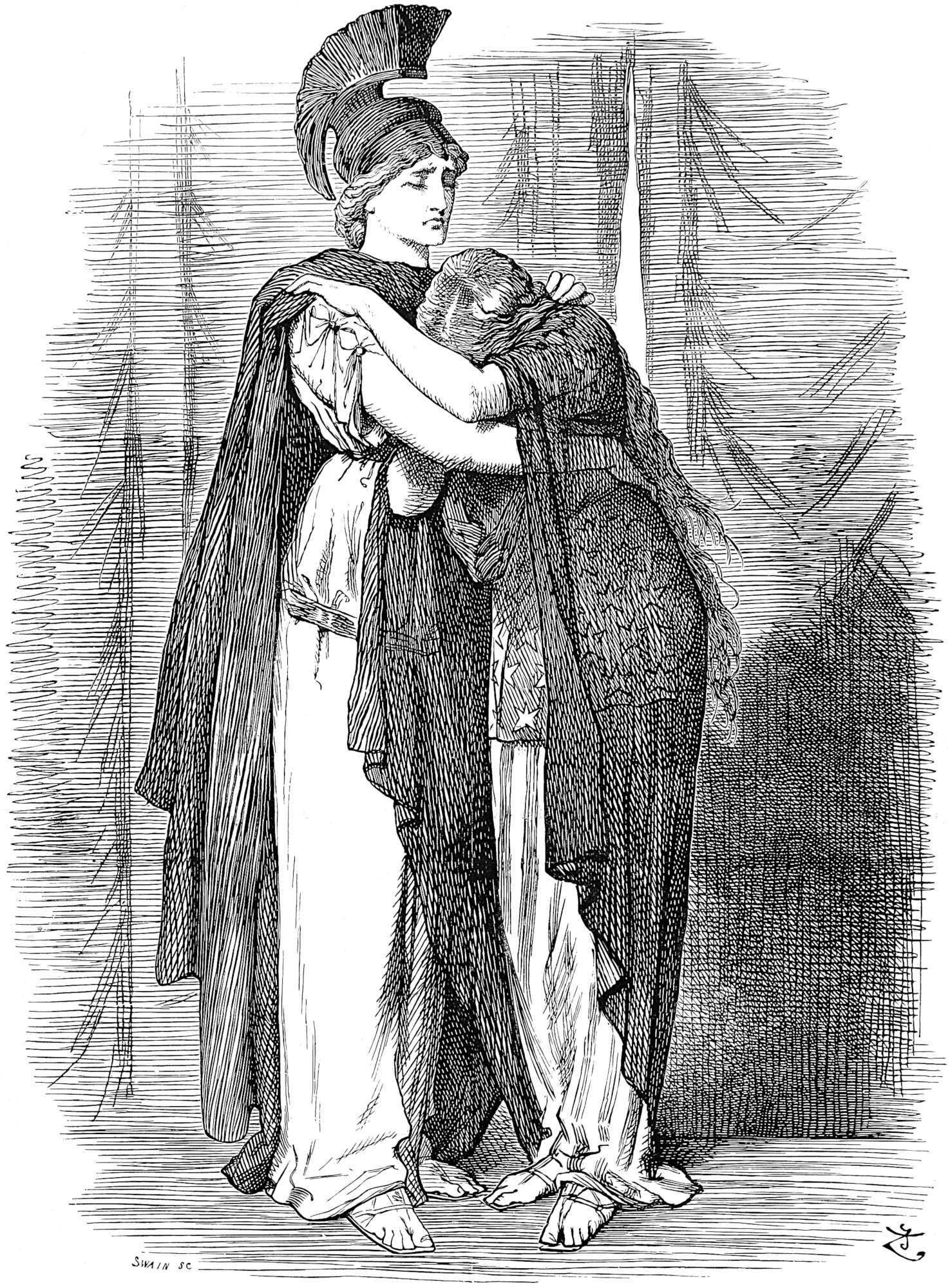 Mrs. M. (hysterically). “I never will do it! It’s of no use asking me! I never will desert Mr. Micawber!!”