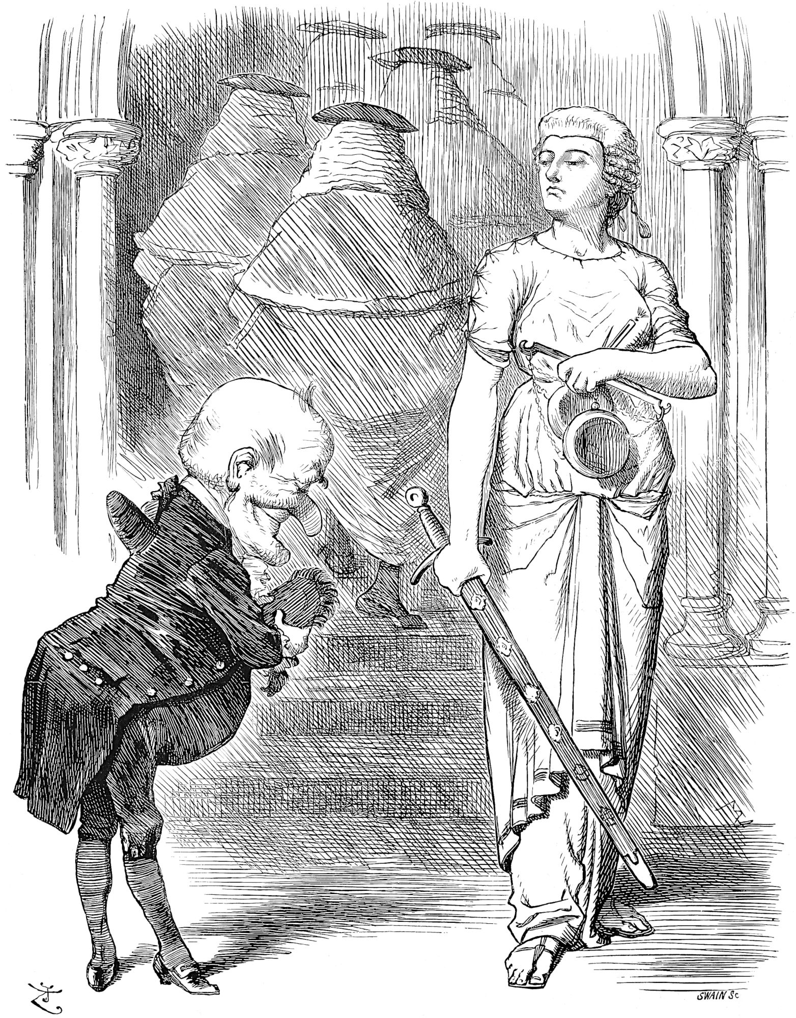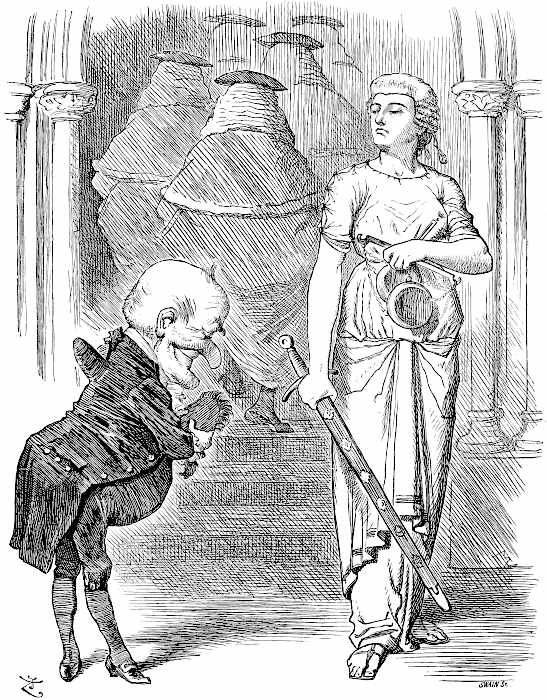 Mr. Punch (to Themis). “Well, Madam, now that your New Establishment is open, I trust the system you mean to adopt is—Low Charges and no Delays.”