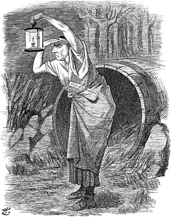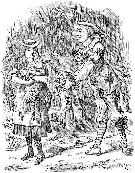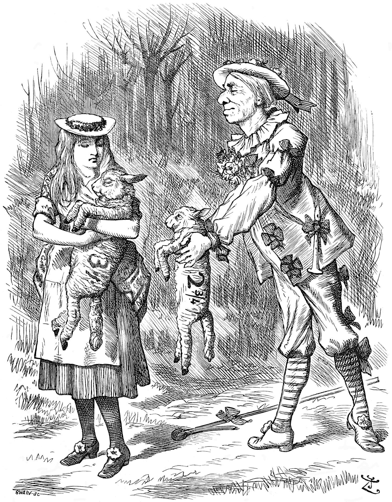 For the 2-page images, the joins were not fixed up, as it would require substantial subjective art work that would not do justice to Sir Tenniel.